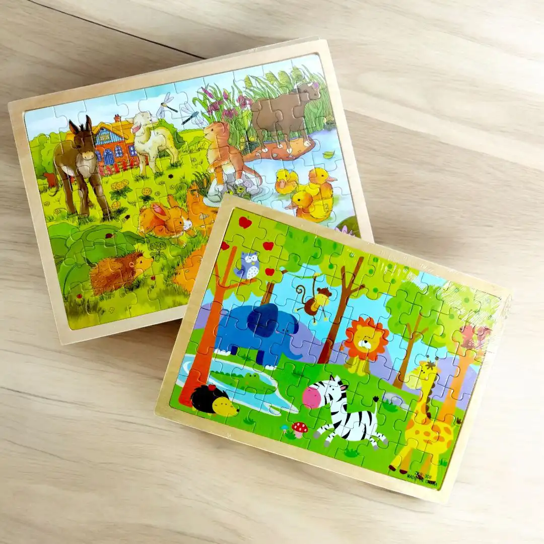 لعبة بازل خشبية 60 قطعة برسومات حيوانات المزرعة أو الحديقة!