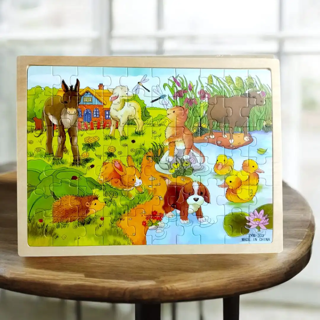بازل خشبي 60 قطعة حيوانات الحديقة او المزرعة