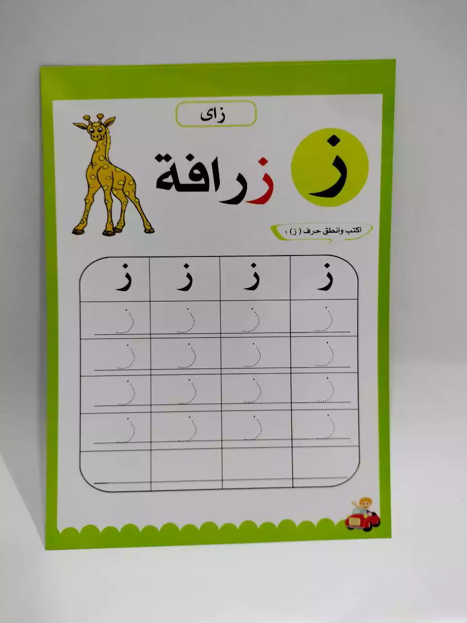 جدول الكتابة: مساحة مخصصة لتكرار كتابة الحرف، مما يعزز مهارات الكتابة اليدوية.