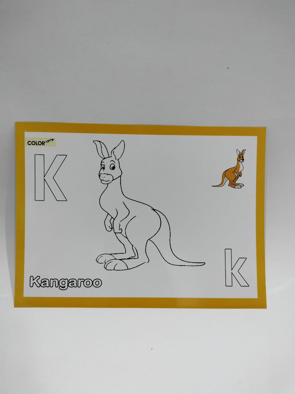 الوجه الثاني لكل بطاقة:تلوين الحرف: نشاط تلوين للحرف، مما يساعد في تعزيز التعرف البصري على الحرف.