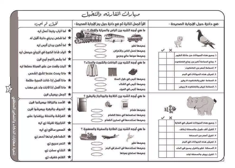 مهارات المقارنة والتخيل.