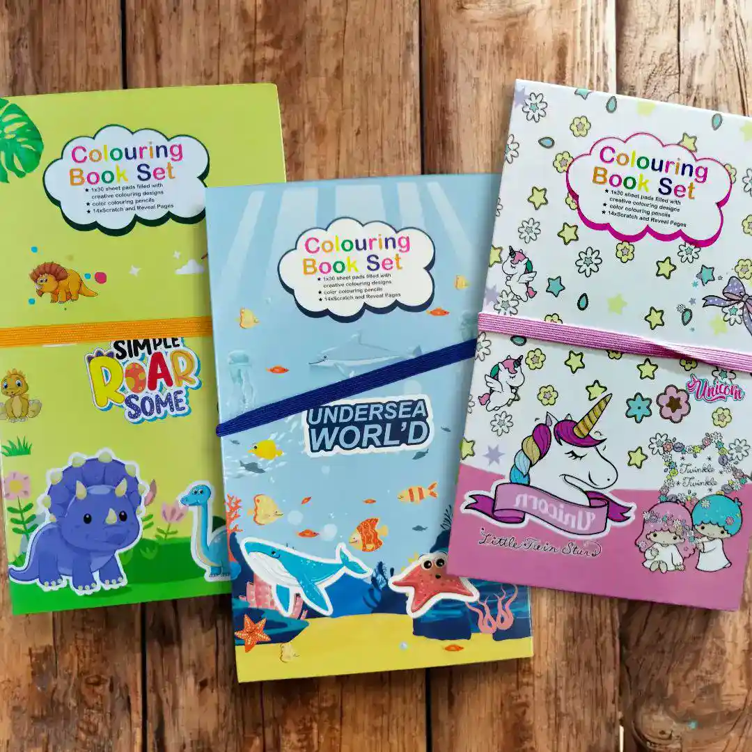 ✅ علبة ألوان كاملة عشان التلوين يبقى جاهز.