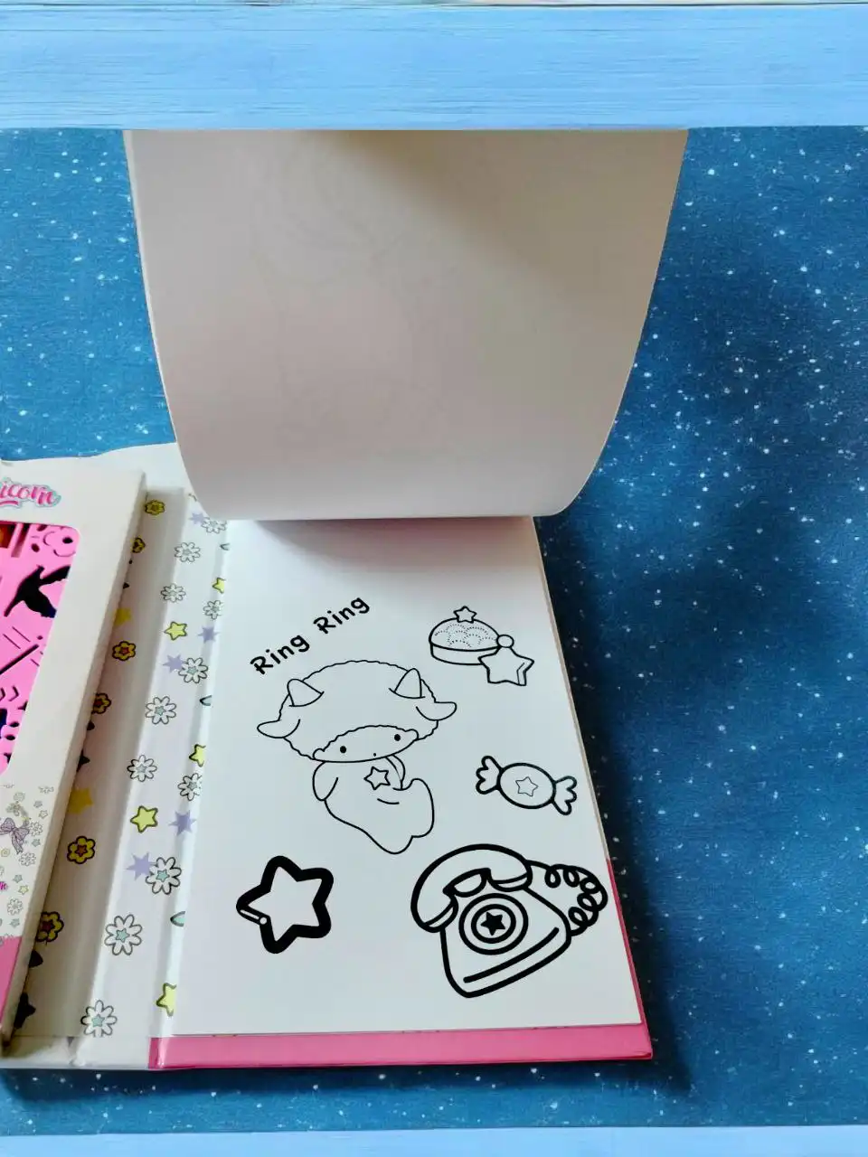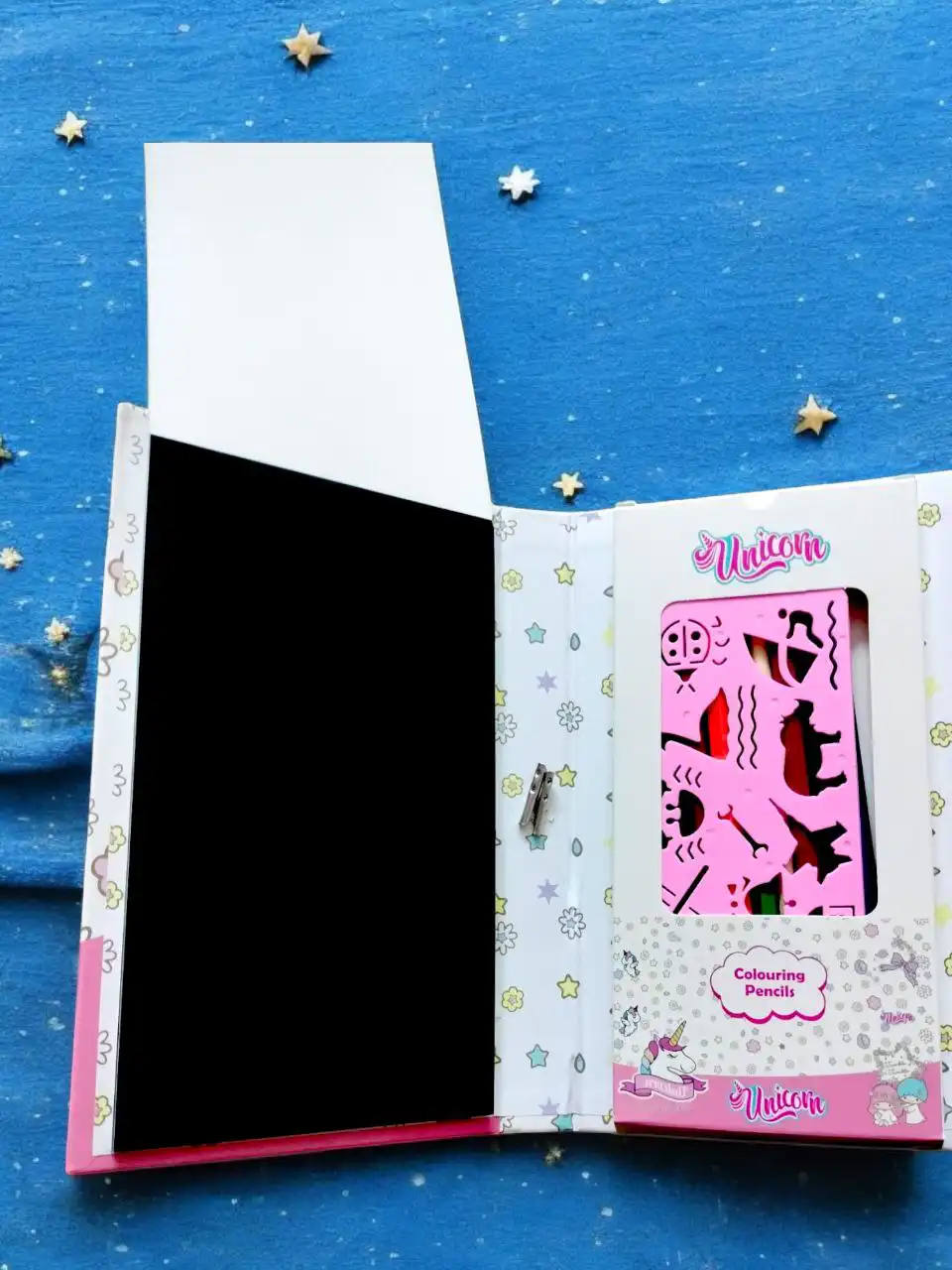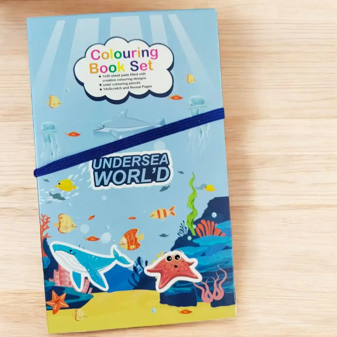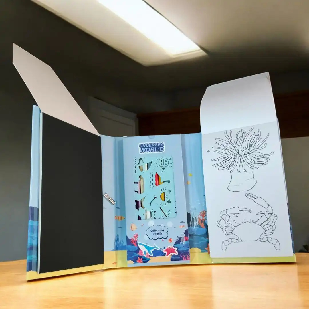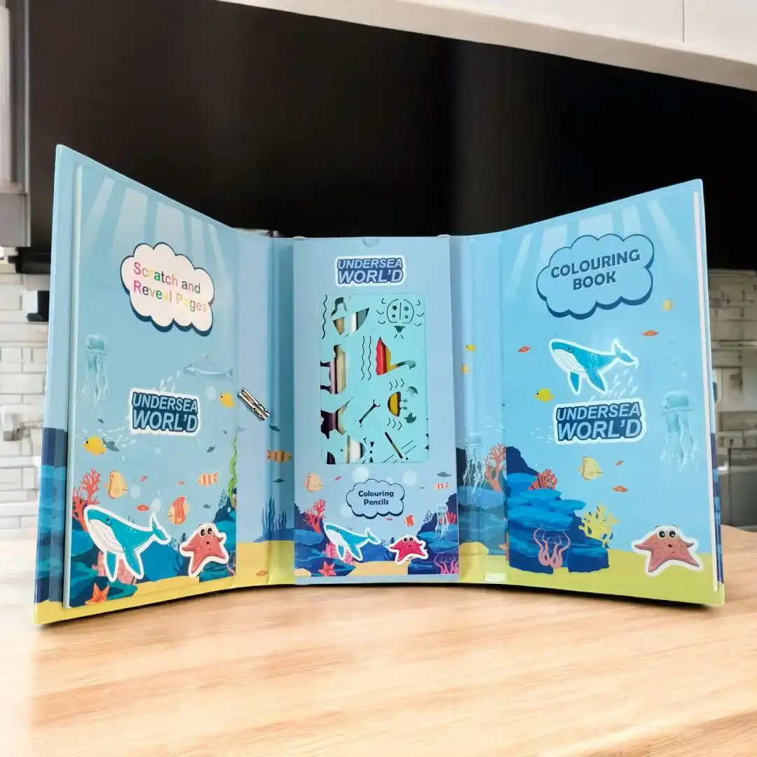 2️⃣ وجزء مغطى بطبقة سوداء ساحرة! مجرد ما الطفل يخربش عليها، تظهر الألوان بشكل مبهر من 9 صفحات!