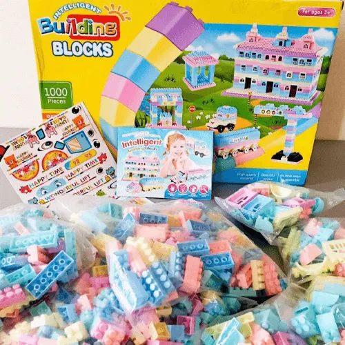 مع مكعبات ليجو 1000 قطعة،