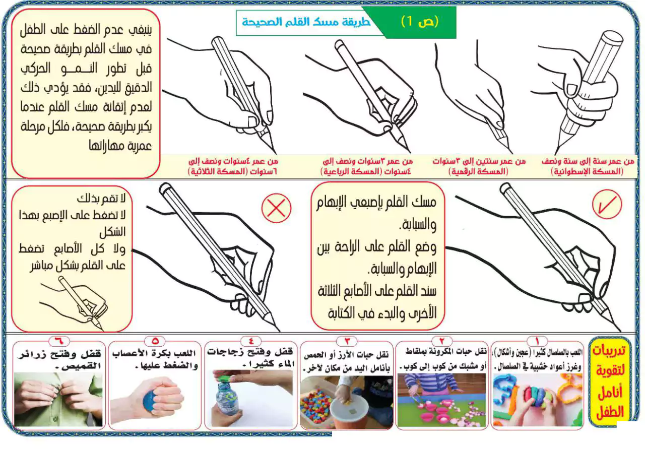 هذه المجموعه برنامج متكامل تجعل طفلك يتقن الكتابه فى اسرع وقت لانها تبدأ من البدايه وهى كيفيه مسك القلم ثم الشخبطه ومفهوم النقط والتوصيل بين النقاط البارزه وغيرها لتصل بمهارات ماقبل الكتابه ثم مهارات كتابه الحروف العربيه والارقام العربيه بطريقه مبسطه وصحيحه فى نفس الوقت