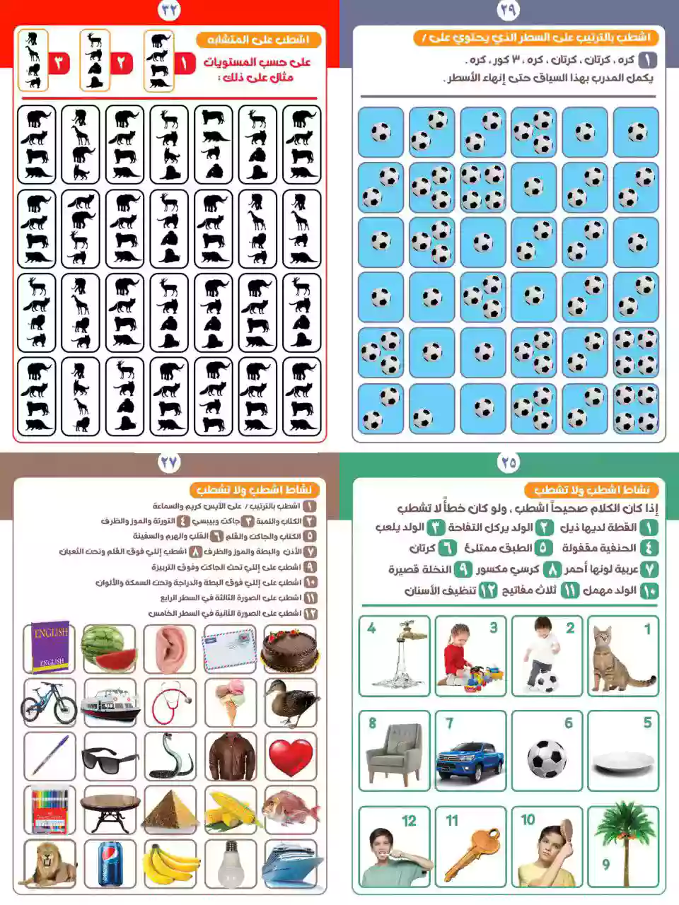 🎨 لعبة الشطب : تعتبر لعبة الشطب أداة ممتازة لتطوير مهارات الانتباه والتركيز لدى الأطفال. من خلال حذف الأشكال المتشابهة في البطاقة، يتعلم الأطفال التركيز والتمييز بين التفاصيل الدقيقة. هذه اللعبة تساعدهم على تحسين مهارات التصنيف والمقارنة، مما يعزز التفكير النقدي لديهم.