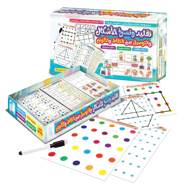 المجموعة مكونة من 4 العاب ( لعبة التقليد و النسخ + لعبة الرجل الخشبي + مجموعة الاختلافات + 4 لوحات تلويين وش وضهر )