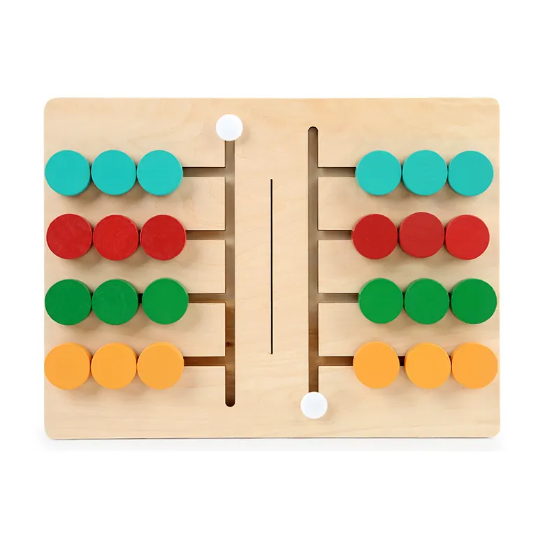 تحريك الألوان على اللوح الخشبي يعزز التنسيق بين اليد والعين، مما يساهم في تطوير المهارات الحركية الدقيقة.