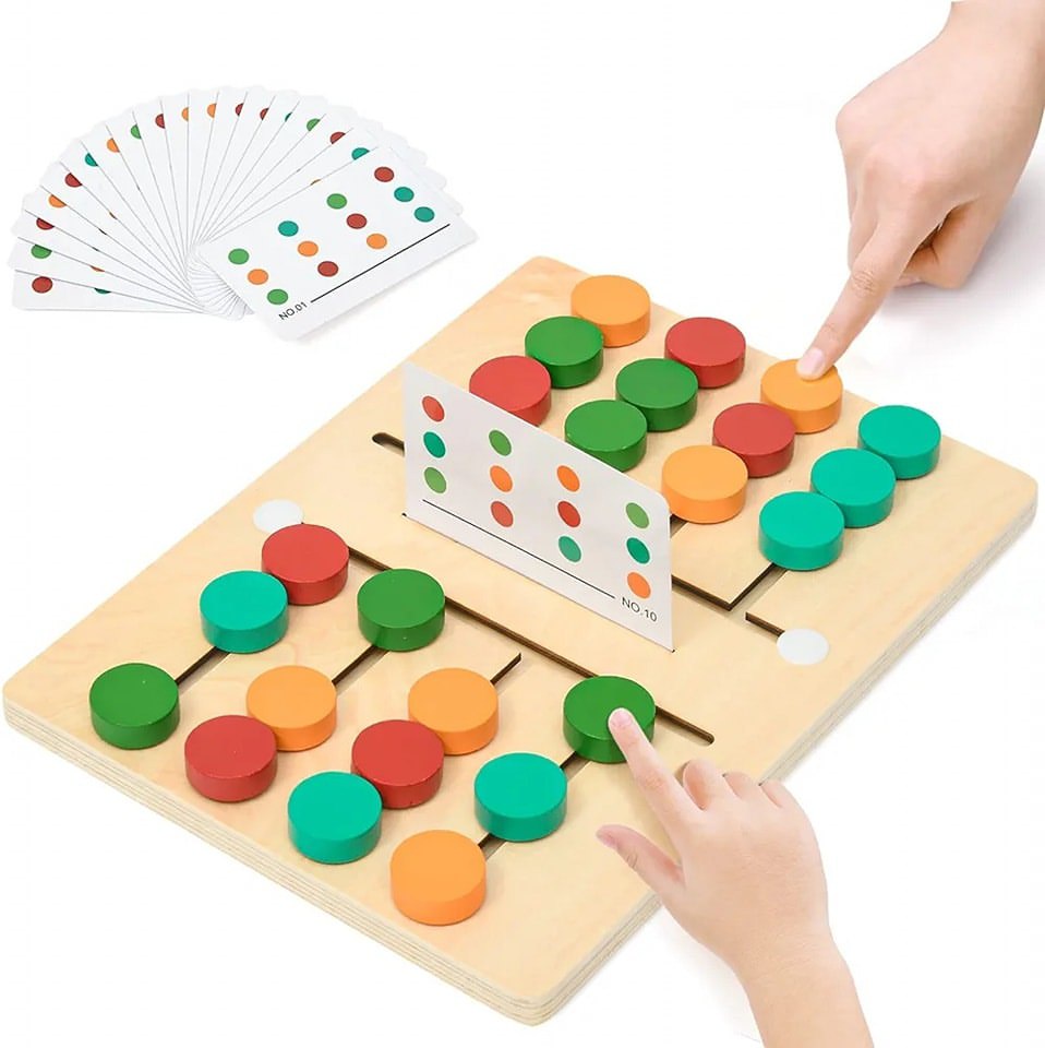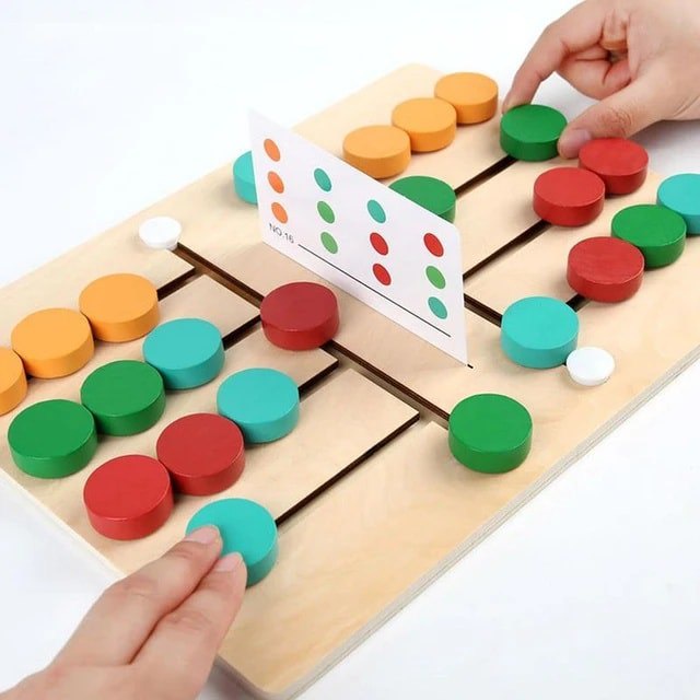 تحريك الألوان على اللوح الخشبي يساعد طفلك على تطوير التنسيق بين العين واليد مع تعزيز المهارات الحركية الدقيقة.