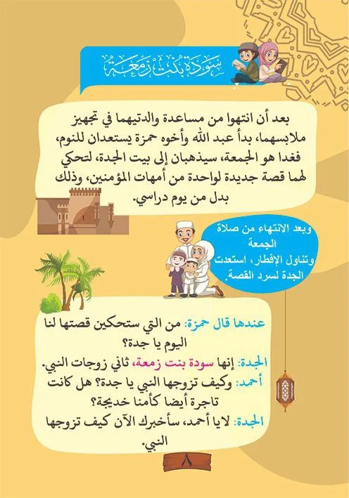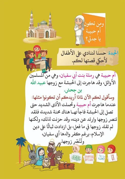 و الجدة تحكى لأحفادها بطريقه تفاعليه اول قصه وهى أمنا الحبيبة خديجه بنت خويلد رضى الله عنها مرورا بقصه سوده بنت زمعه ثاني أمهات المؤمنين مرورا بعائشة حتى جويريه بنت الحارث رضى الله عنهن ومواقفهم مع النبي صلى الله عليه وسلم وذلك بأسلوب تربوي قصصي عن طريق سؤال الأحفاد وجواب الجدة بأسلوبها الرائع