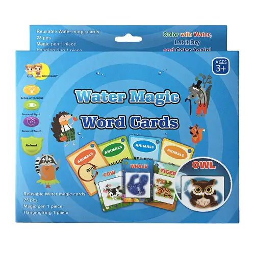 اجعل وقت التعلم أكثر متعة مع لعبة كلمات سحرية بالماء – مجموعة مبتكرة من البطاقات التعليمية التي تكشف الصور والكلمات عند التلوين بالماء!