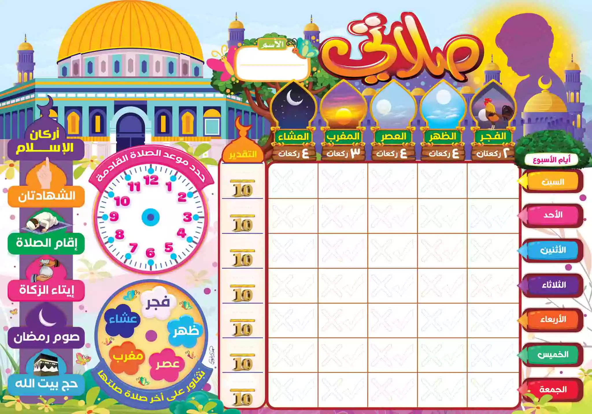 الطفل هيتابع الصلاة وقت بوقت وولى الامر فى آخر الأسبوع هيكتب التقدير للطفل لتشجيعه