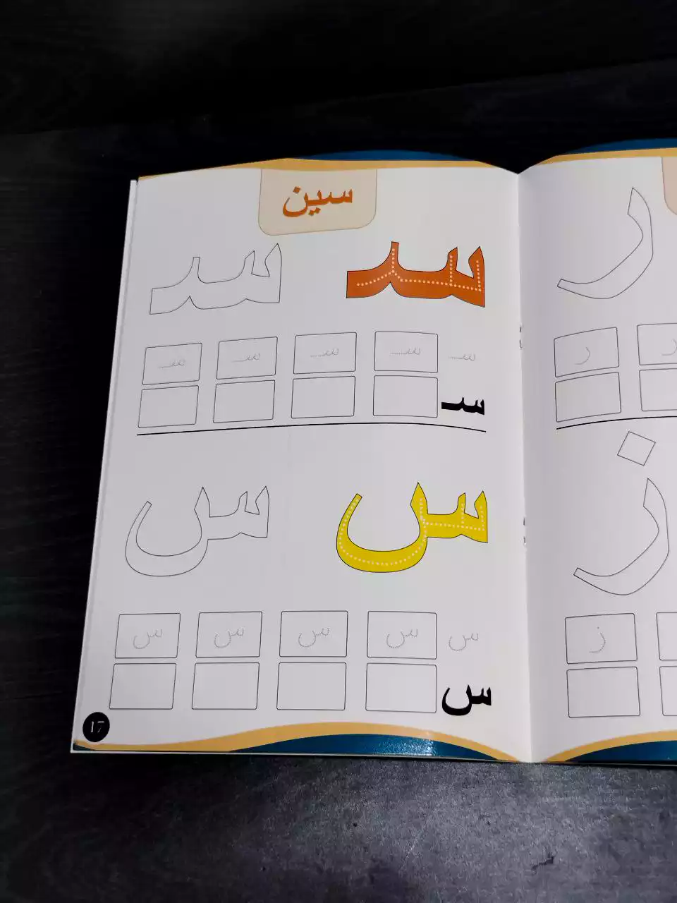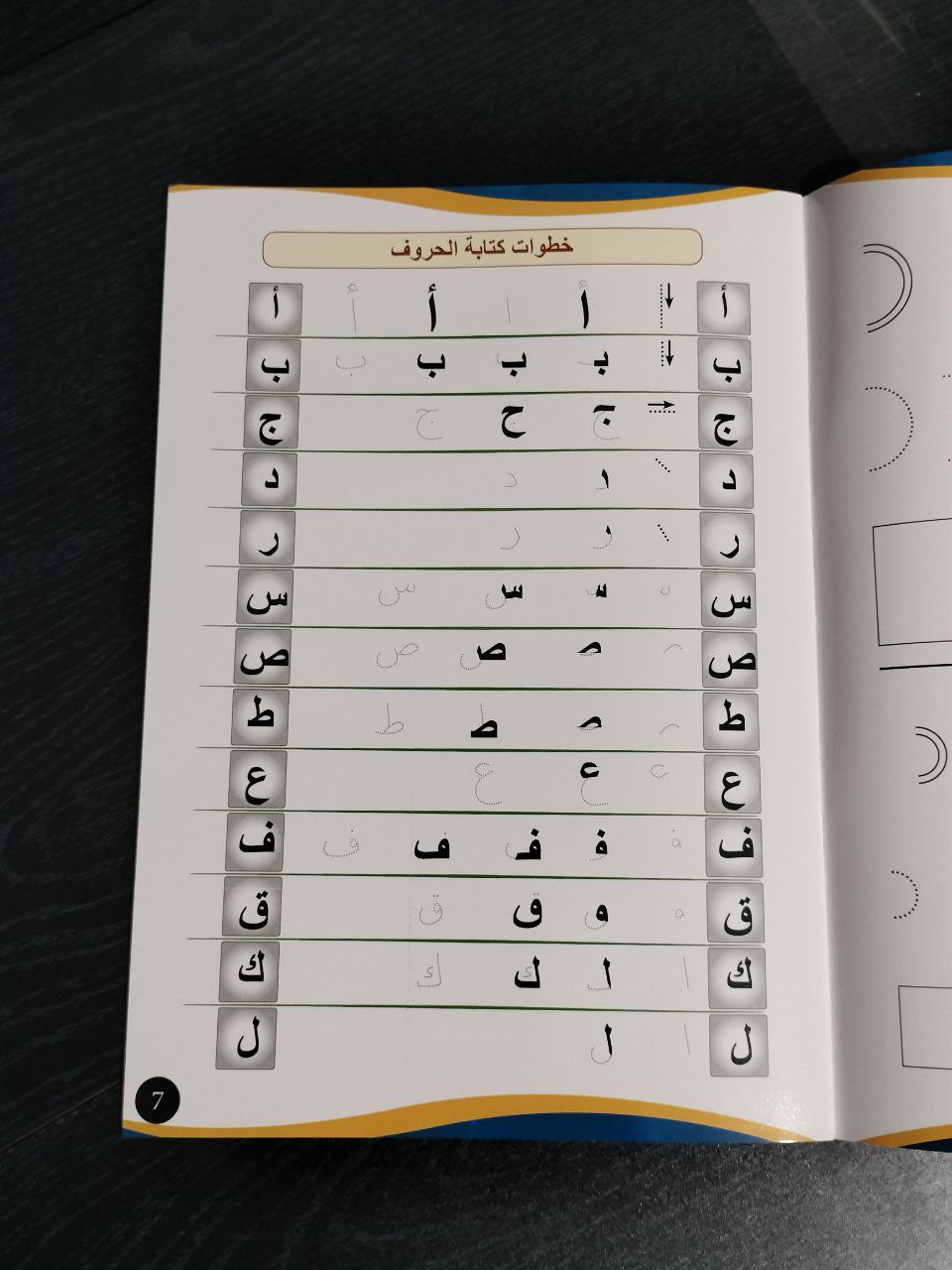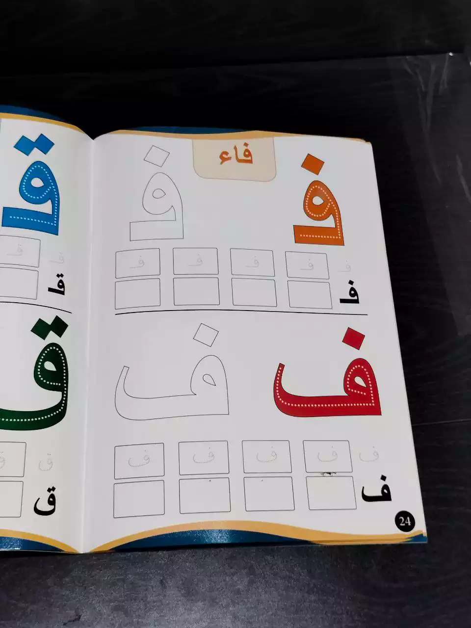 تصميم مخصص لتكرار الحروف: يحتوي الكتاب على أماكن مخصصة لتكرار كتابة الحروف، مما يساعد الأطفال على تحسين مهاراتهم الكتابية.