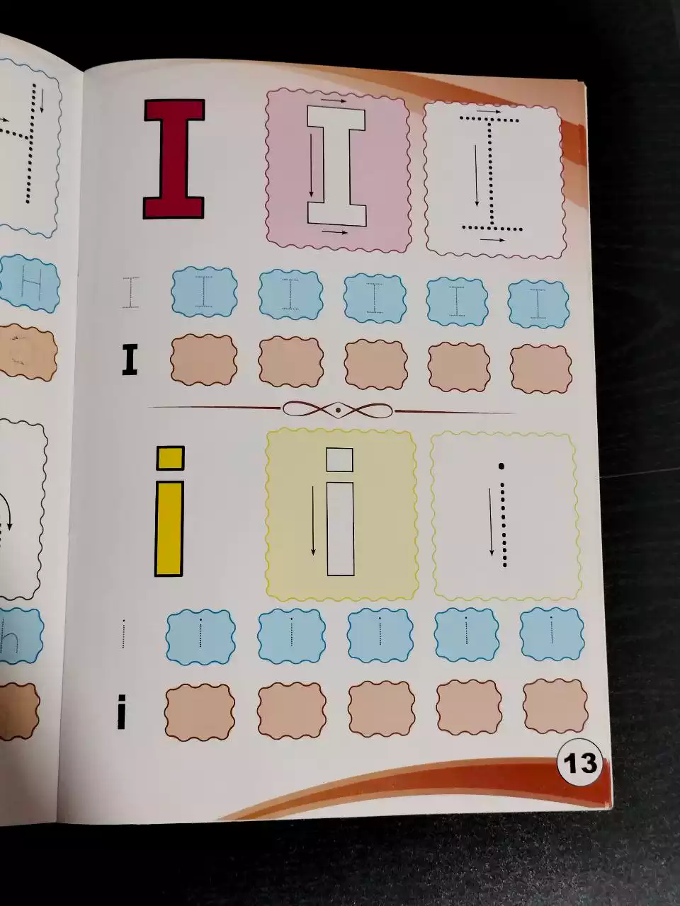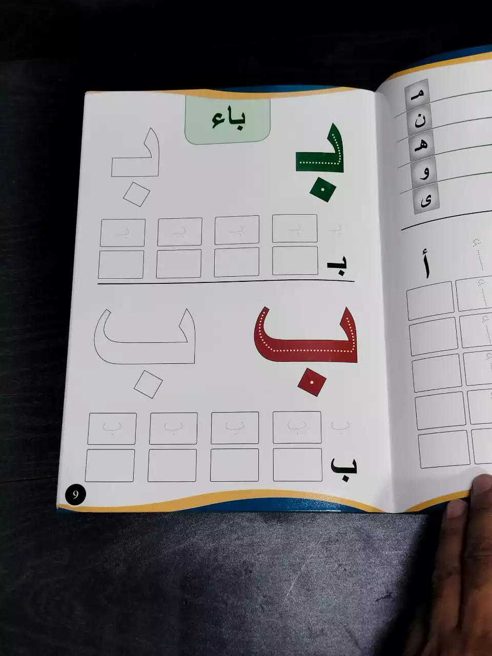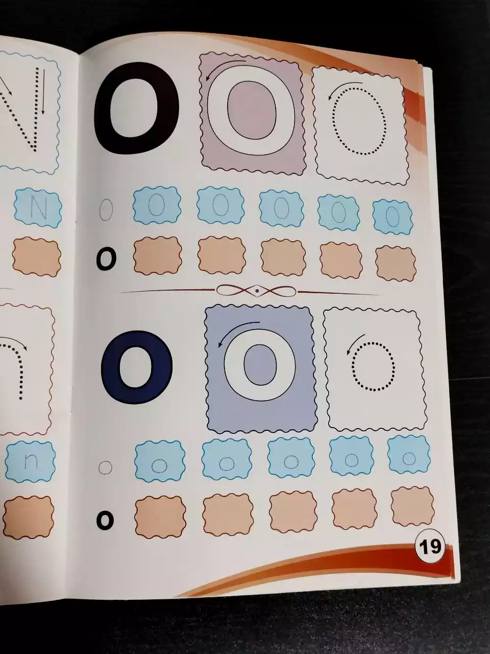 تصميم مخصص لتكرار الحروف: يحتوي الكتاب على أماكن مخصصة لتكرار كتابة الحروف، مما يساعد الأطفال على تحسين مهاراتهم الكتابية.