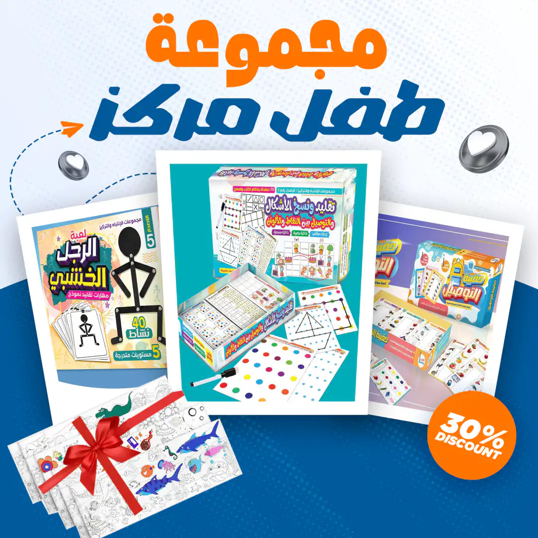 مجموعة طفل مركز هي باكدچ ألعاب وأنشطة ذكية تنمّي تركيز طفلك، تقوّي إدراكه البصري وتنسيق اليد والعين، وتقلل التشتت مع وقت لعب مفيد بعيد عن الموبايل.